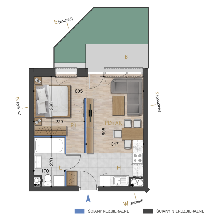 Mieszkanie nr M3, 35.03 m2, 2-pokojowe